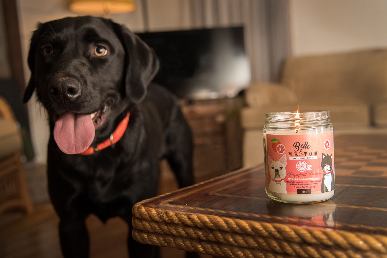 At Belle & Mr. Tom we know that you want to feel confident that your home is odor free. We believe your pets are part of the family and you should be able to enjoy having your pets in your home without the embarrassing odor. This is why we developed the Belle & Mr. Tom Pet Odor Eliminator Candle that is formulated with the most effective odor neutralizer and infuses the air with a pleasant scent.